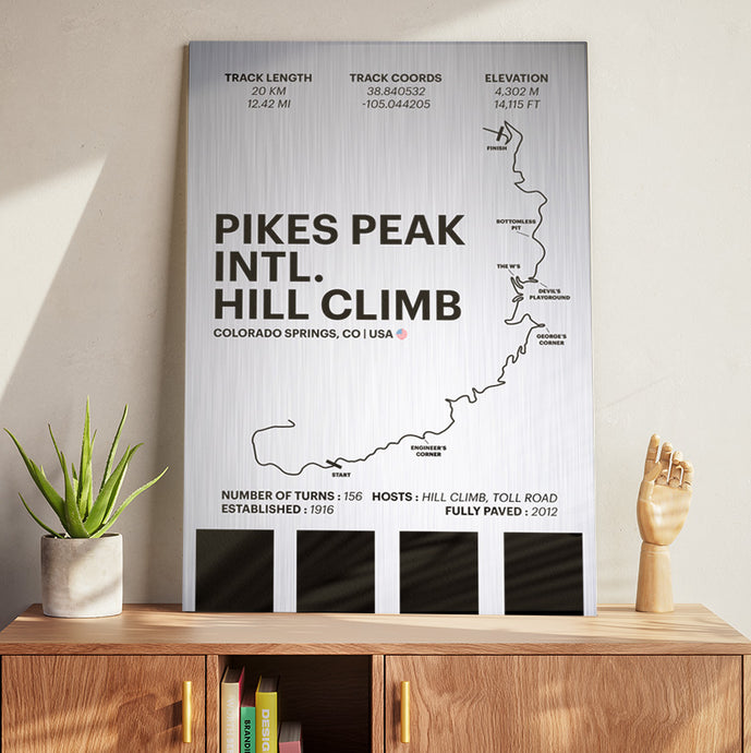 Start building your own collage / wall art collection with Pikes Peak Intl. Hill Climb and add others we have - currently over 55+ international tracks!